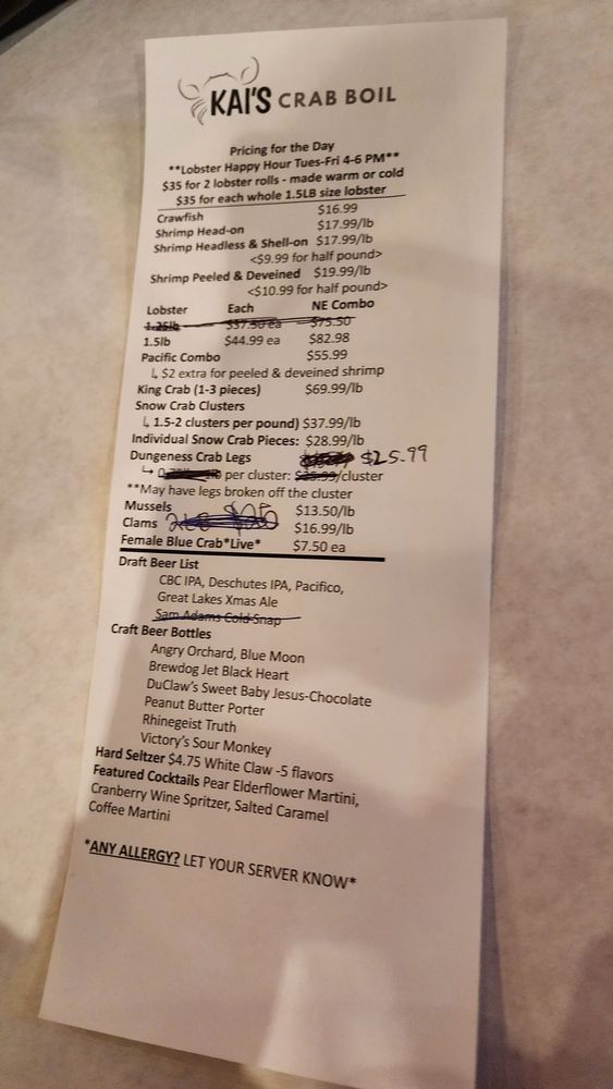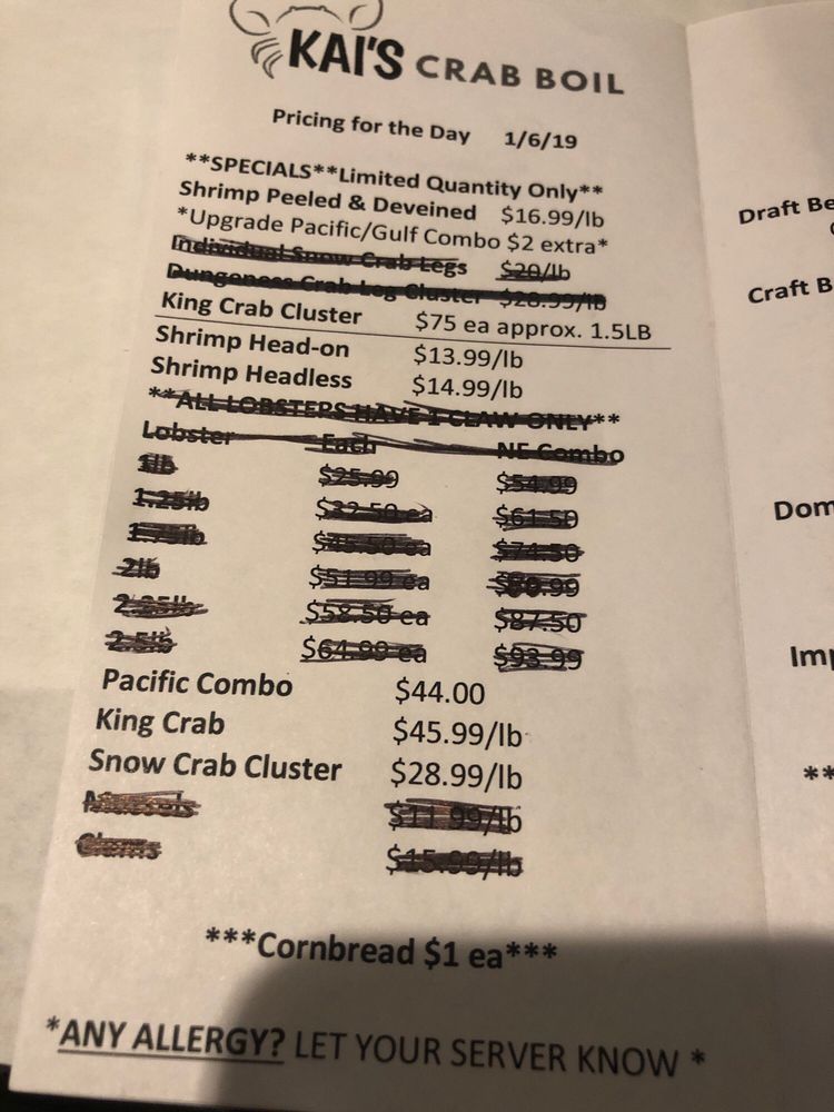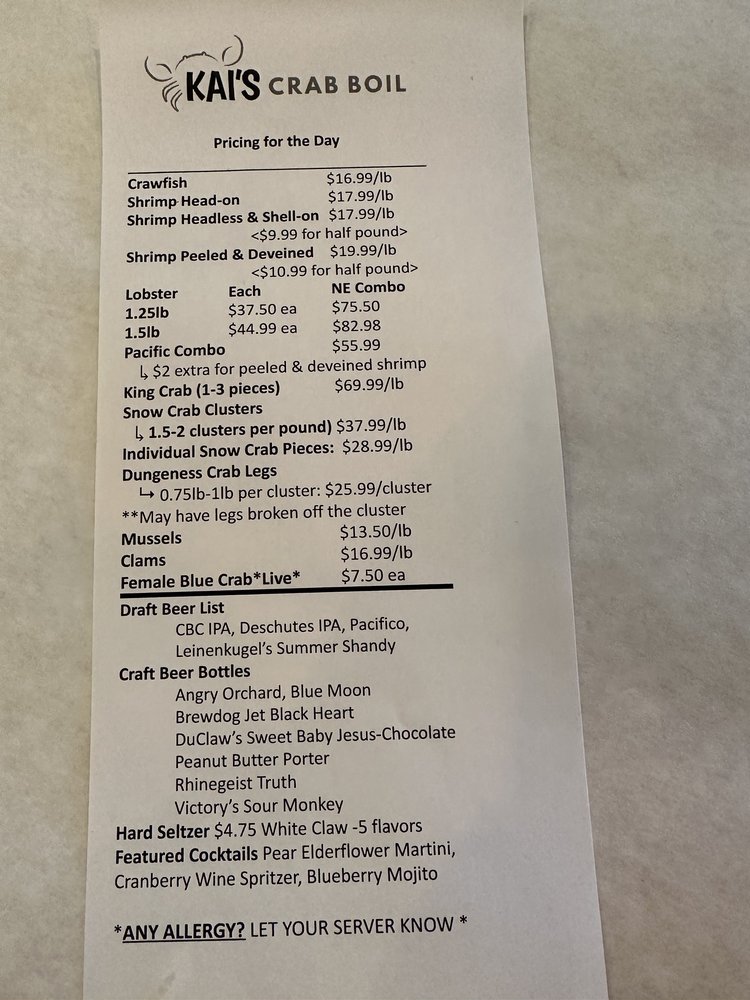 Kai's Crab Boil is a trendy and casual seafood spot in Columbus, OH. With a diverse menu including Cajun and Creole flavors, they offer a range of options for everyone. From steamed rice and garlic noodles to hand-breaded shrimp baskets and crab leg combos, there is something for every seafood lover. The prices may be on the higher side, but customers rave about the exceptional food and service. Reviews highlight the delicious sauces, spacious and clean environment, and attentive staff. Whether you're looking for a quick lunch or a night out with friends, Kai's Crab Boil is worth a visit for the flavorful dishes and unique dining experience. Visitors appreciate the gender-neutral restrooms, private lot parking, and wheelchair accessibility, making it a convenient choice for all. Don't miss out on the opportunity to try their signature Kai sauce and enjoy a memorable dining experience.